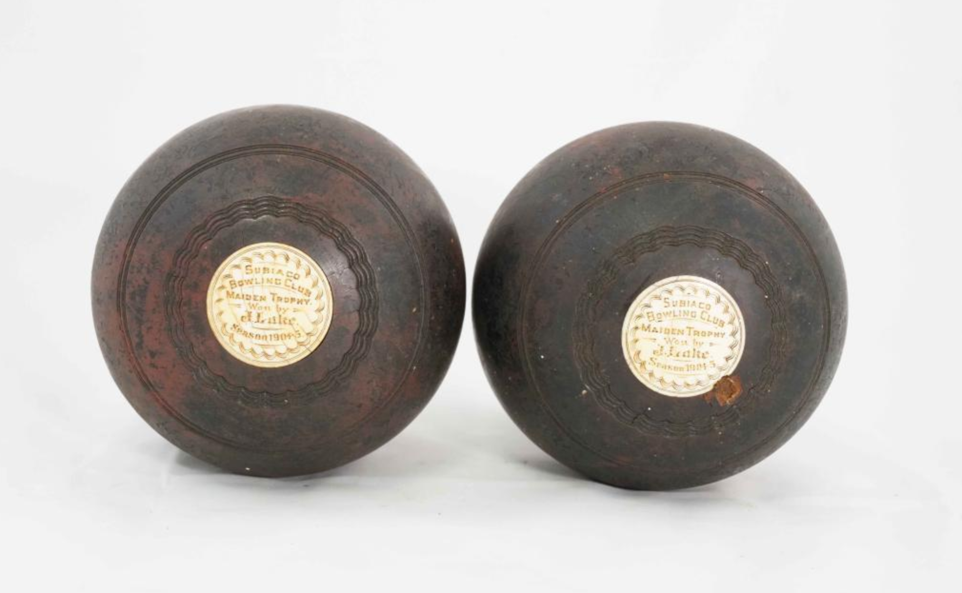 February's object of the month was a pair of wooden bowls for lawn bowling. These bowls are lead weighted with ivory dedication plaques inscribed "Subiaco Bowling Club, Maiden Trophy, won by J. Lake, Season 1904-5".